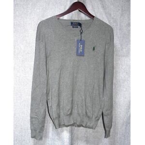 Polo Ralph Lauren Gray Pima Cotton V-Neck Sweater S NWT