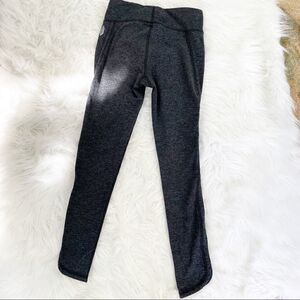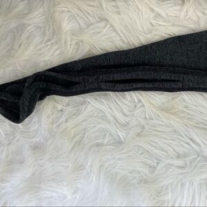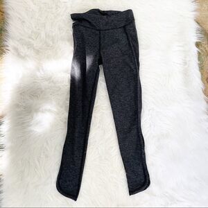 Free People Movement Infinity cut out crop leggings size x-small. Grey/black polyester/spandex blend material with stretch. Mid-rise with cut-out sides and scalloped hemline. Cropped length and logo on front. No holes or stains.
