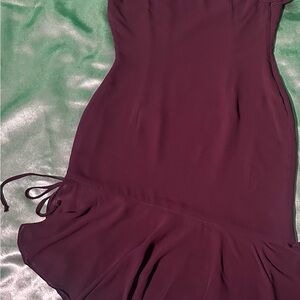 Elegant one-shoulder style. Deep burgundy hue. Ideal for special occasions.