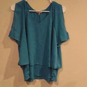 cute women's Juicy Couture top with cut out shoulders in very good condition teal color