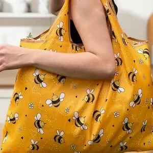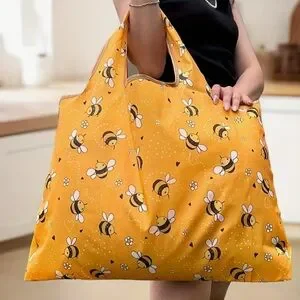 Portable Shopping Nylon Tote Bag Vibrant Bumble Bee & Flower Design