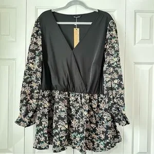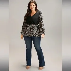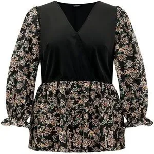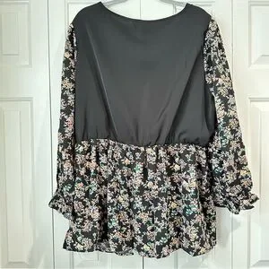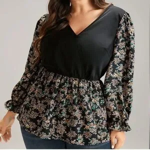 BloomChic Ditsy Floral Patchwork Elastic Waist Blouse Black / 22-24 / 3X