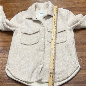 Abercrombie&Fitch Soft and plush teddy jacket. Features button closure and dual chest pockets. Ideal for layering in cooler weather.
