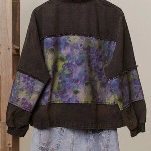 💵💵Bertina's Mello Denim Cargo Jacket with Floral Contrast Panels