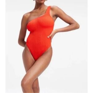 $95 Good American 00/0 XXS/XS Crinkle Hot Shoulder One Strap Cheeky Swimsuit Red NWT