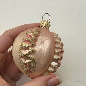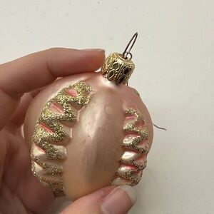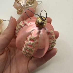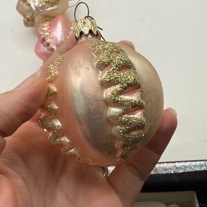 Vtg Glass Christmas Ornaments Lot Bundle 3 Pink Round Bulbs Collectible Glitter