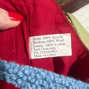 Such a fun and festive hooked Christmas stocking with Santa and penguins. The front has that classic looped, hand-hooked texture, the back is wool, and it’s fully lined. Bright colors, cute design, and perfect for mantel decorating or gifting.