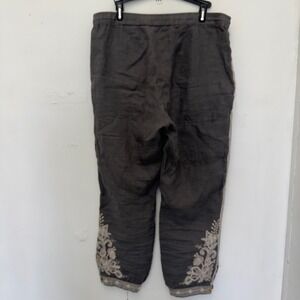 JW Los Angeles Women's Grey Linen Embroidered Cropped Pants Size S