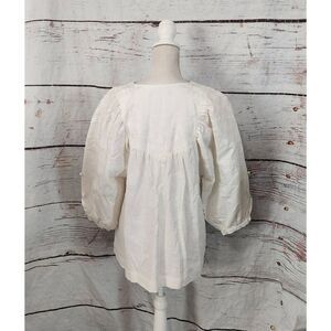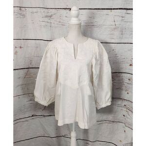 CAARA Embroidered Puff Sleeve Linen Top Size Small