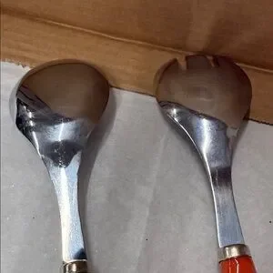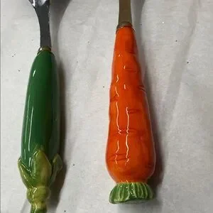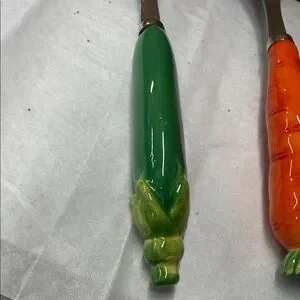 ⭐️Vintage Set of ceramic & stainless steel salad servers vegetable themed handle