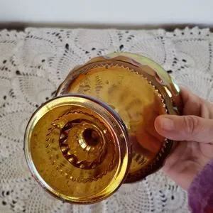 Pretty Vintage Gold Carnival Glass Pedestal Compote Candy Dish