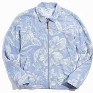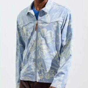 Urban Outfitters Men's Full Zip Floral Hawaiian Harrington Jacket Blue Cream L
