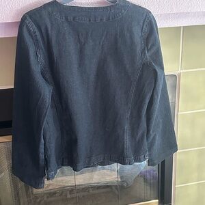 This beautiful Diane Gilman Jean jacket is embellished with lovely gold rings which make this jacket unique and exquisite. You will get many compliments when wearing this lovely jacket. It was worn only one time and is an excellent preowned condition.