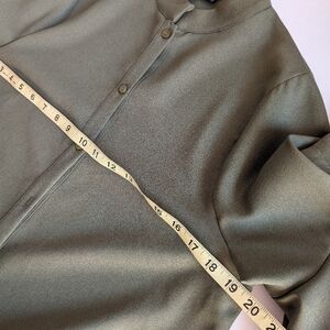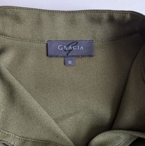 Gracia Olive Tiered Ruffle ¾ Sleeve Button Front Standing Collar Blouse- sz M