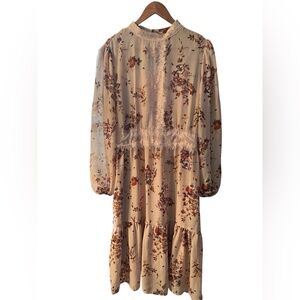 Xhilaration Beige Floral Long Sleeve Dress