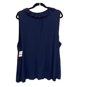 New Croft & Barrow 3X Navy Blue Sleeveless Ruffle V Neck Top Knit Women