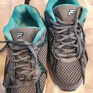 like New blue gray Fila women's Sneakers. tealish. super comfy. great tread for walking or running.