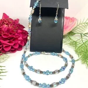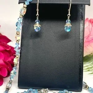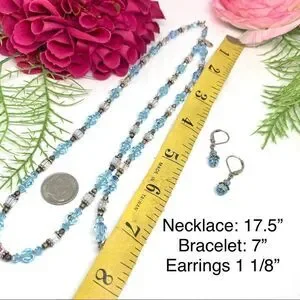 Absolutely Stunning & Super Sparkly Vintage Aqua Blue Clear Austrian Crystal Necklace, Bracelet & Pierced Dangle Earrings Matching Set. Marked .925 - Sterling Silver.