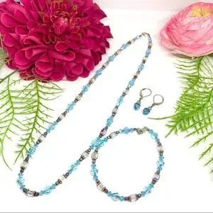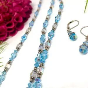 VINTAGE⚜️STERLING SILVER Austrian Crystal Necklace, Bracelet & Earrings Set