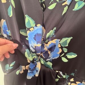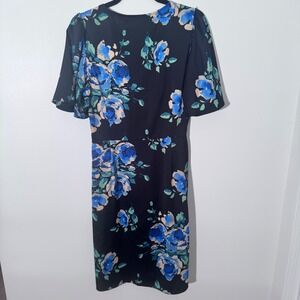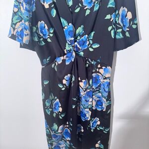 Zara Black and Blue Floral Print V Neck Short Sleeve Midi Dress