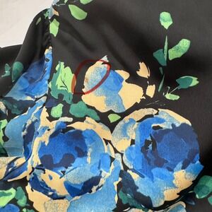 Enchanting elegance blooms in this Zara Basic dress, a captivating piece that whispers of garden parties and sun-drenched afternoons. The dress features a flattering V-neckline and short sleeves, creating a silhouette that's both comfortable and chic. A cinched detail at the waist adds definition, while the midi length offers a touch of sophistication. The black backdrop allows the vibrant blue and green floral print to truly pop, creating a visually stunning effect. This dress is perfect for a casual brunch with friends, a romantic date night, or even a special occasion where you want to make a statement.