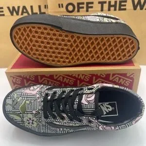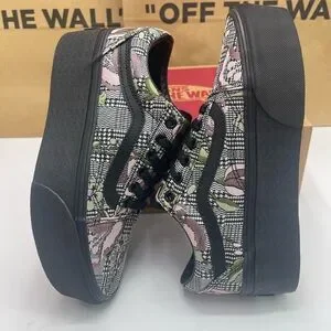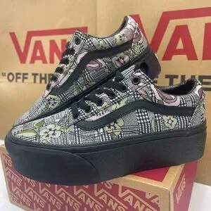 Elevate your look with Vans platform sneakers. Features a vibrant floral pattern in black, pink, and green. Stylish and comfortable for everyday wear.