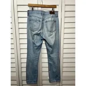 The Madewell The Perfect Summer Jean in women's size 27 in the Fitzgerald Wash is a stylish and versatile pair of denim pants perfect for all seasons. Made of 100% cotton with a light wash, these jeans feature a solid blue color and a zip closure. The regular fit and straight leg style offer both comfort and a flattering silhouette. The high-rise waist and pockets add both practicality and a touch of fashion. Machine washable and breathable, these jeans are a must-have for any woman's wardrobe looking for a timeless and trendy piece.