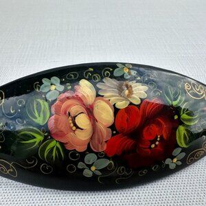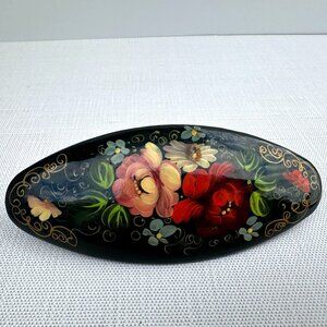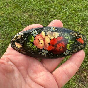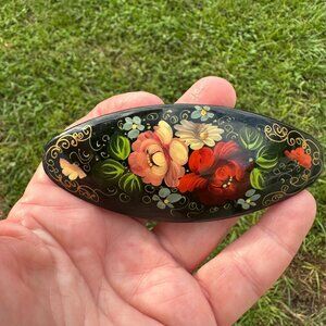 Hand Painted Lacquer Hair Barrette — Floral Russian Folk Art Style 4" Clip