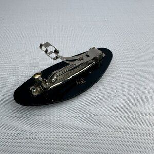 This hand-painted lacquer hair barrette features a rich black base with detailed floral artwork in warm reds, pinks, greens, and gold. The back is signed “H.C.” and fitted with a sturdy French-style metal clasp—a beautiful accessory for everyday wear or a unique piece for collectors of traditional hand-painted lacquerwork.
