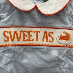little sloans Blue Gingham smocked Baby Romper pie thanksgiving