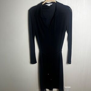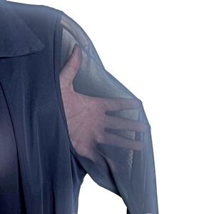 Vintage Y2k Black Sheer Mesh Long Sleeve Dress Pockets Whimsigoth L Petite