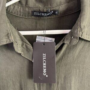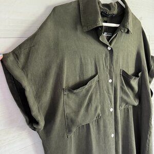 This elegant dark green midi dress features a button-down front and stylish chest pockets, perfect for any casual occasion.