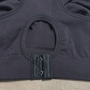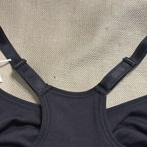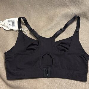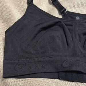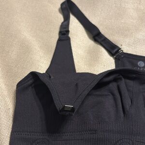 NWT Seamless maternity & nursing bra. Great for 1st trimester, 0-4 weeks post birth & nursing. Knitted from super soft dense yarn. Easy-feed drop down cups. Inner side sling for support. Racerback with adjustable hook & eye closure. Adjustable shoulder straps. Size S Color Black 12” w band. Nylon/Elastane