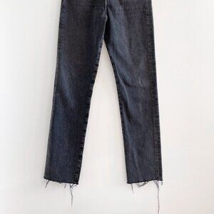 A streamlined take on a cult favourite, these are high-rise jeans with a straight silhouette, offset back waistband and a criss-cross button front. They’re made from non-stretch 100% organic cotton denim. This version comes in a washed black with a raw hem.