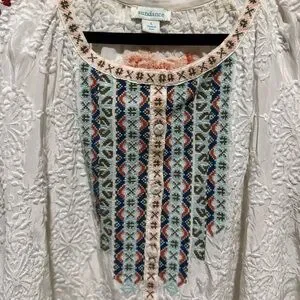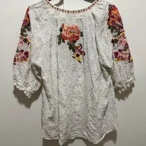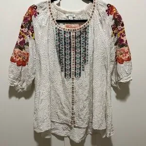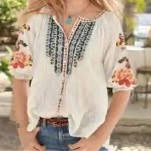 Sundance Melody Peasant Floral Embroidered Blouse Johnny Boho Lace Popover Top
