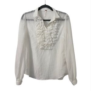 Free People Ruffle Top XS White Edwardian Coastal Victorian Lightweight