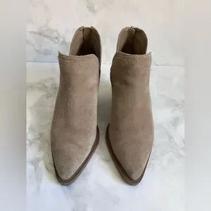 VINCE CAMUTO Reggie Tan Suede Pointed Toe Heeled Ankle Booties Size 6
