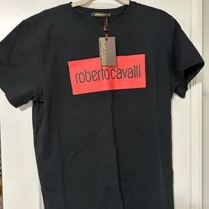 Chic black tee by Roberto Cavalli. Features a striking red accent. Ideal for everyday style.