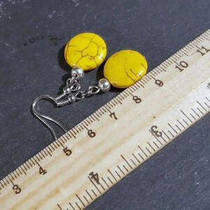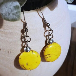 Handcrafted Silver and Yellow Magnesite Gemstone Puffed Coin Dangle Earrings