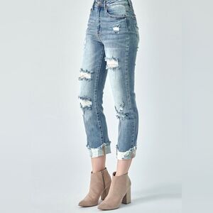 NWT RISEN HIGH WAISTED TURN BACK CUFF/UNCUFFED STRAIGHT JEANS SIZE 30/11