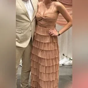 Gianni Bini Grace Metallic Plisse Sweetheart Neck Cut-Out Tiered Dress