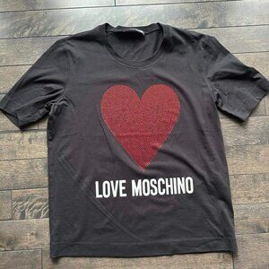 Love Moschino Embellished Heart Tee - NEW black cotton tee with crystal embellished red heart new without tags size 8