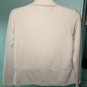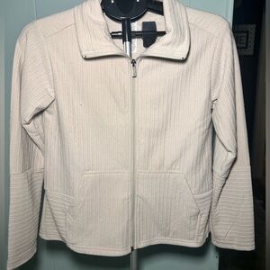 Stylish utility jacket with ribbed texture. Features a full zip and high collar. Perfect for layering.