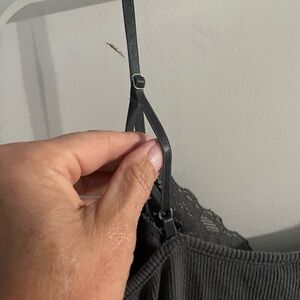 Elegant charcoal camisole with delicate lace trim. Ideal for layering or standalone wear.