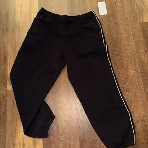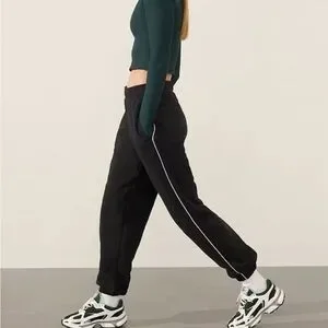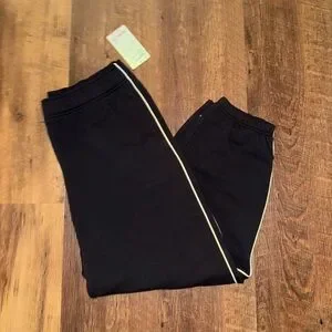 Athleta Forever Fleece High Rise Piping Jogger Black /White Sweat Pants Large