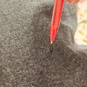 The tag is falling off, only attached by a small thread, and there is a loose thread with small whole on back right shoulder.