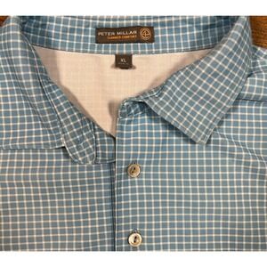 Peter Millar Men's Summer Comfort Polo Golf Shirt Blue All Over Plaid Men's XL