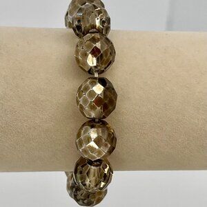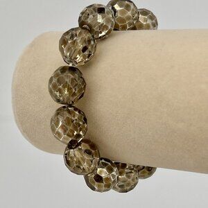 Pre-owned, gently used, Faceted Czech Glass Fire Polished Gray Gold Crystal Beaded Stretch Bracelet. (1/2 inch, extra large beads.)