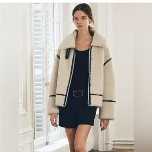 Wrap yourself in the luxurious warmth of this Zara Teddy Jacket, featuring a plush cream fabric accented with bold black trim. The oversized fit and wide collar offer a relaxed yet stylish look, perfect for chilly days. Its hip-length design ensures a modern and versatile addition to your wardrobe.