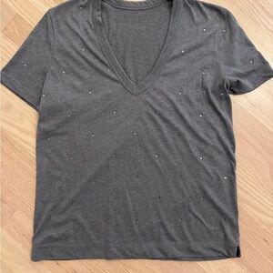 Zadig & Voltaire Studded Gray V-Neck Tee